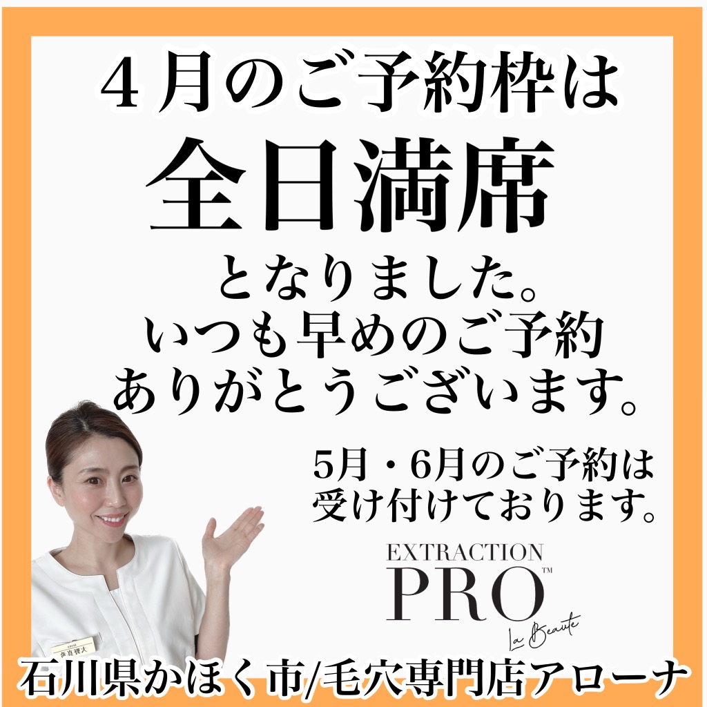 4月のご予約枠は全日満席となりました。